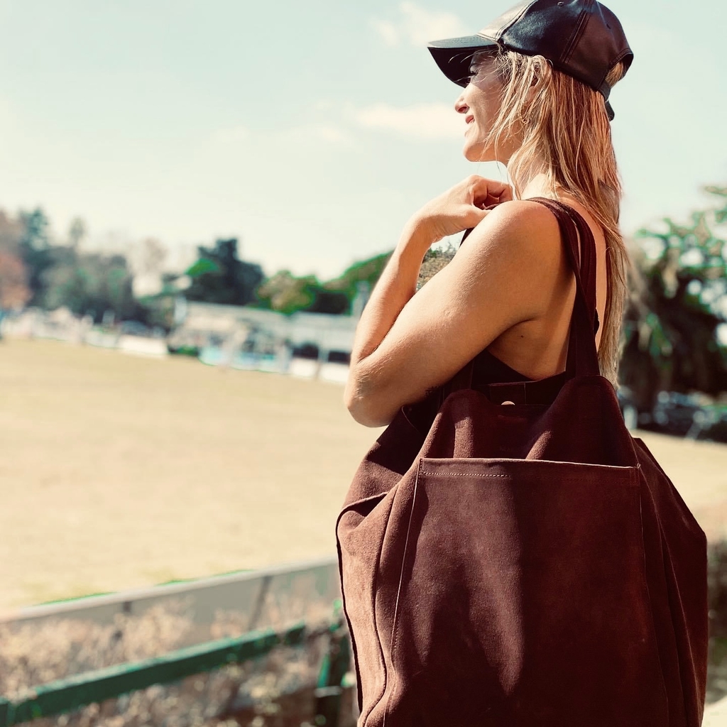 Bolso de gamuza, supler amplio y cómodo, ideal para todos los dias o para viajar. Con bolsillo grande, para guardar de todo y bolsillo interno desmonrable, colgante con cierre metálico (perfcto para guardar tarjetas, diner, llaves, cosas importantes). Diseño de look desestructurado, flexible y liviano, sin forrar. 100% CUERO ARGENTINO.